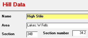 In 2005 we added 10-figure grid references from GPS units. This led to a change in objectives, since for the first time we were offering data more accurate than available elsewhere. Some other online sources were also publishing 10-figure grid references, but these were often derived from digital maps, which are not as accurate and often fail to identify the true summit. After some discussion we decided to embrace the concept of a database in a fuller sense and make accuracy a goal. This meant overhauling our existing data, since much published hill data is inaccurate (with the honourable exception of TACit Tables). It is a task still in progress. The most common error stems from grid references being rounded to the nearest 100 metres, as many list authors are unaware of the convention for co-ordinate systems (you should give the south-west corner of the square containing the feature, however many digits you quote). That problem is gradually receding as an increasing number of people contribute 10-figure grid references. Then we discovered that grid references from hand-held GPS units are subject to systematic errors arising from inaccuracy in the instrument's transformation from latitude and longitude. We have learned how to correct for them, so we now give co-ordinates to OSGB36 standard, in addition to measurements suitable for input to Garmin units. All this is fully explained in the database notes. That took some effort, but probably the most arduous task was overhauling the Wainwright Outlying Fells listing, in which we collaborated with Geoff Crowder.
