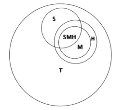 All the Corbetts and Grahams, along with 202 Munros, fit within the small SMH category. Fourteen Munro Tops are also Humps but none are Marilyns. Most Munro Tops are also Simms, but 68 are not and so they fall outside the entire diagram as they have less than 30m drop. Most (47) of these 68 are Subs, which means hills that they fall short of one of the main categories by up to ten metres, therefore: